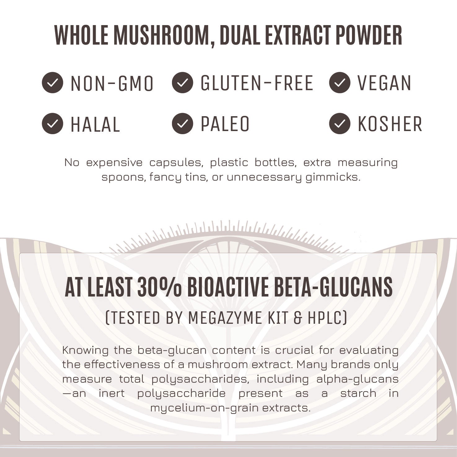 #1 - it is it is an excellent product. The powder is super-fine and dissolves in water almost like instant coffee with no gritty residue. We get all the benefits of dual extraction plus the benefits of the actual mushroom body in the powdered format. Certified organic and third party lab tested for beta glucan-levels.